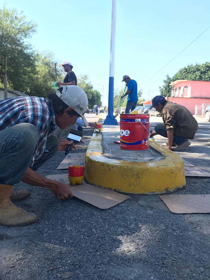 Esta mañana continuamos embelleciendo Padilla con toda la raza de chapoleo y pintura.